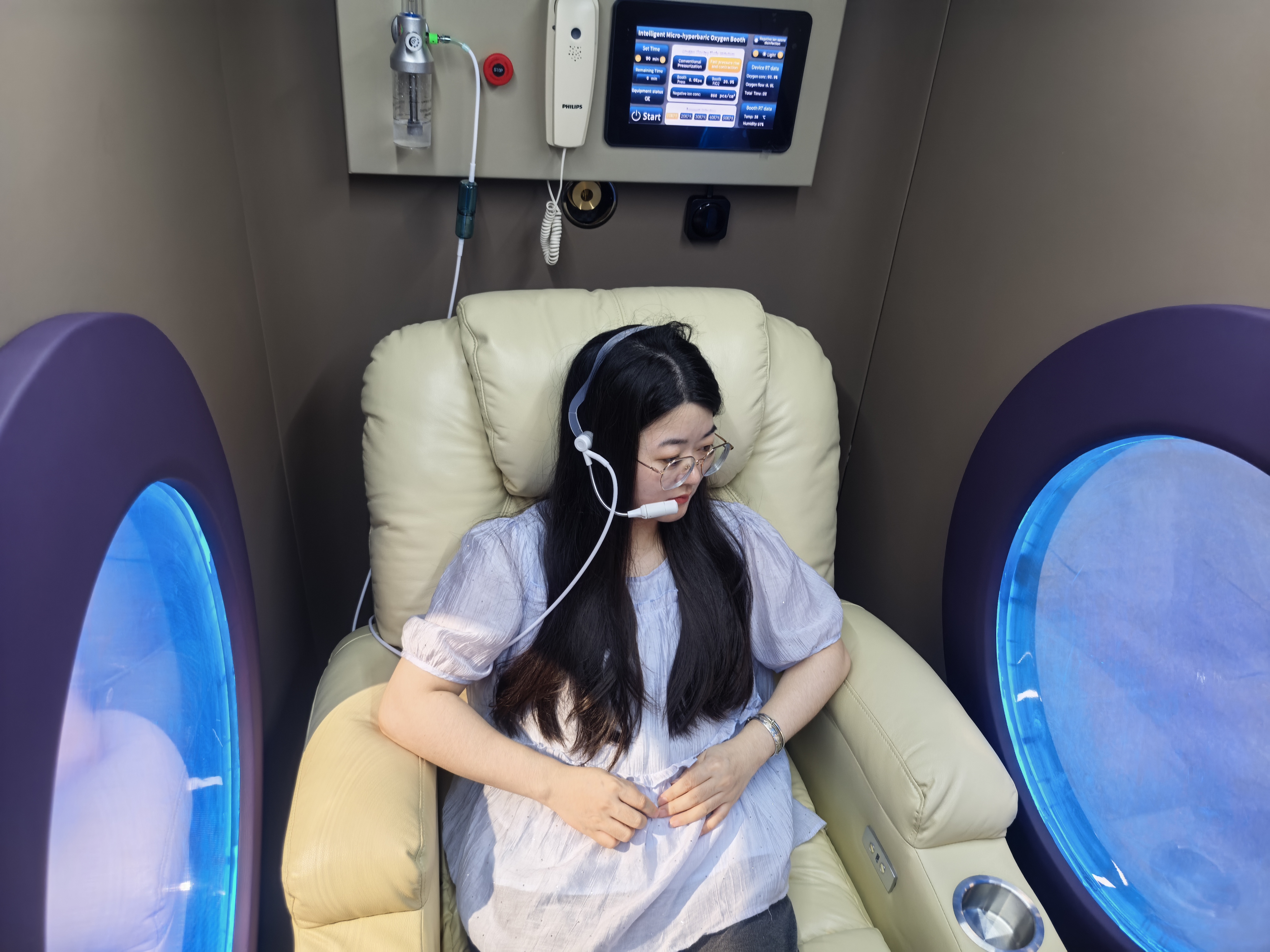 3.Dual Control System: both inside and outside the chamber provideseasy and intuitive control over the therapy parameters.