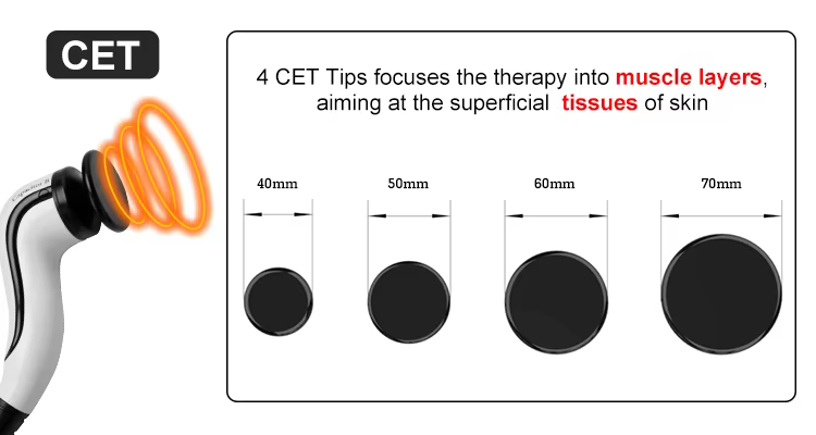 With this system, this device is perfect for both superficial treatments, e.g. aimed at sagging tissue, and deep treatments at the hypodermic level